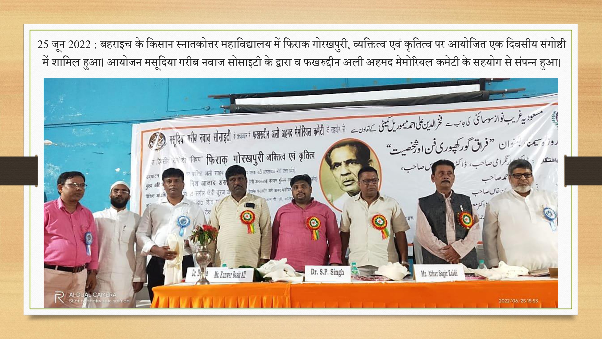 'बहराइच के किसान स्नातकोत्तर में फिराक गोरखपुरी, व्यक्तित्व एवं कृतित्व पर आयोजित एक दिवसीय संगोष्ठी में शामिल हुए|'