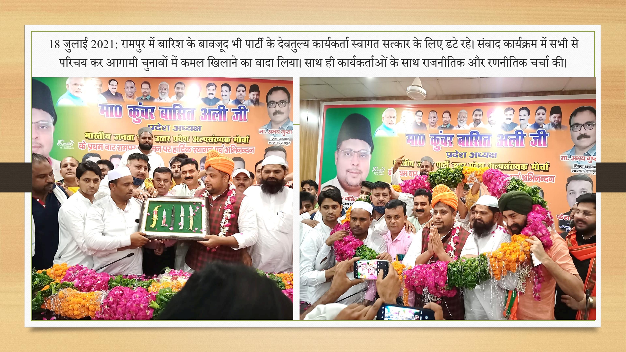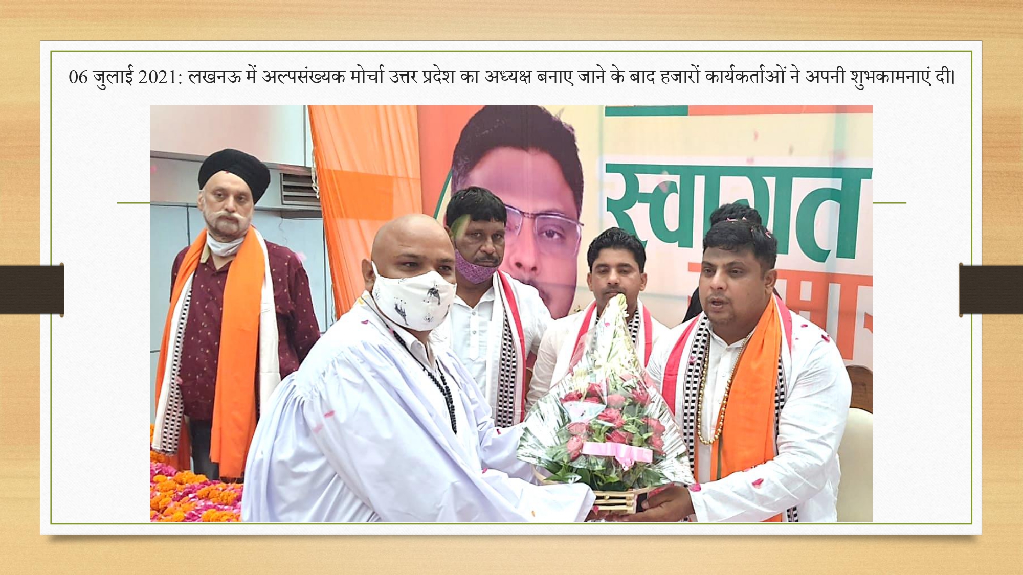 '6 जुलाई 2021 लखनऊ में अल्पसंख्यक मोर्चा उत्तर प्रदेश का अध्यक्ष बनाए जाने के बाद हजारों कार्यकर्ताओं ने अपनीशुभकामनाएं दी'