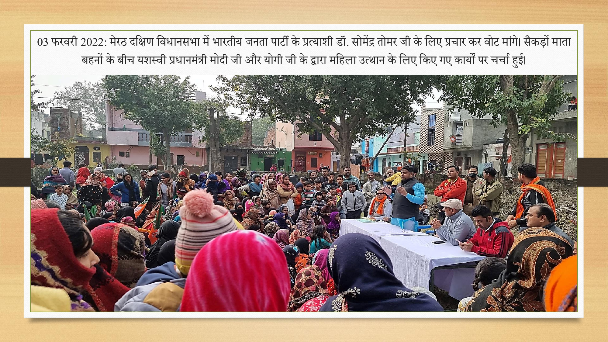 '3 फरवरी 2022 मेरठ दक्षिण विधानसभा में भारतीय जनता पार्टी के प्रत्याशी डॉ सोमेंद्र तोमर जी के लिए प्रचार कर वोट मांगे| सैकड़ों माताओं और बहनों के बीच यशस्वी प्रधानमंत्री मोदी जी और योगी जी के द्वारा मह'